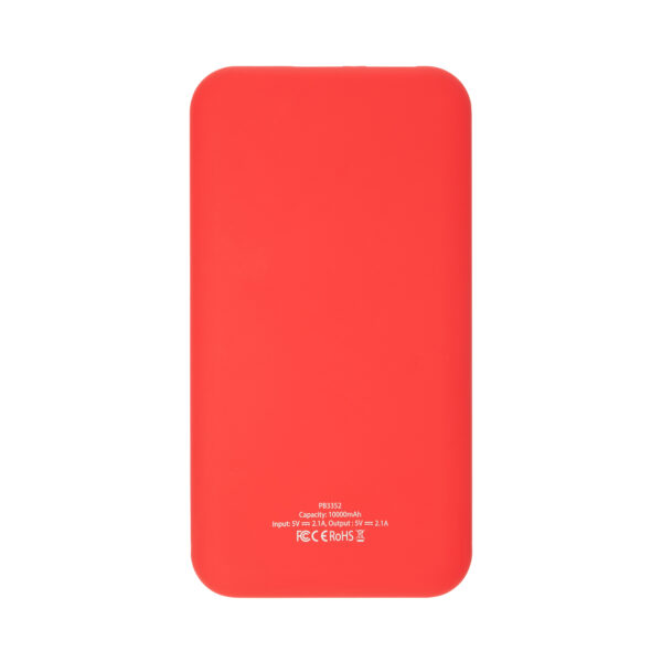 Batería externa elaborada en ABS bicolor con capacidad de 10000 mAh. Indicador luminoso de porcentaje de carga. Con puerto de entrada Tipo C y puerto USB de salida. Compatible con Smartphone, cámaras digitales y consolas. Cable Tipo C incluido.