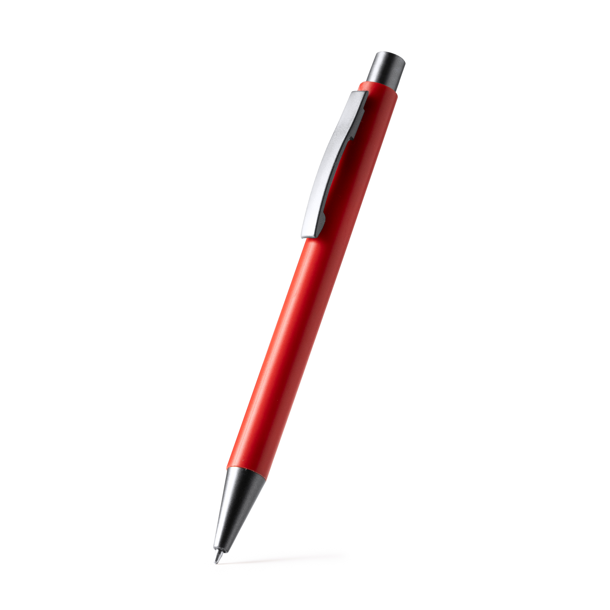 Bolígrafo pulsador de ABS , detalles en acabado metálico mate. Tinta azul.