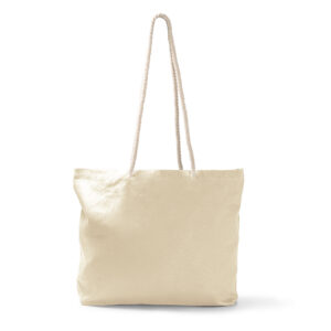 Bolsa de playa realizada 100% en algodón con resistentes asas de estilo náutico fabricadas también en algodón. Sus asas de 90 cm de longitud la convierten en una opción práctica y cómoda.