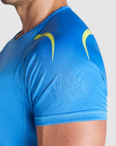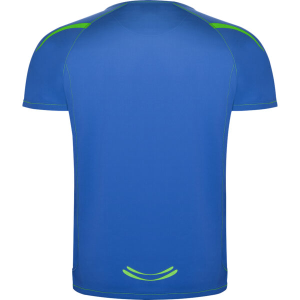 Camiseta técnica manga ranglan unisex transpirable. Costuras a contraste. Cuello ribeteado en el mismo tejido. Paneles laterales. Detalles reflectantes en hombros en todos los colores menos en negro y royal, que es amarillo fluor.
