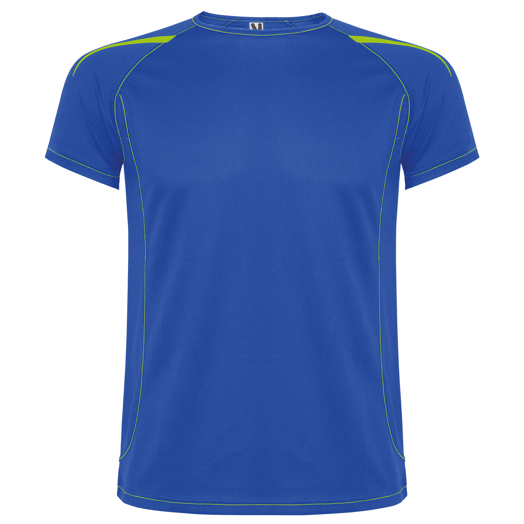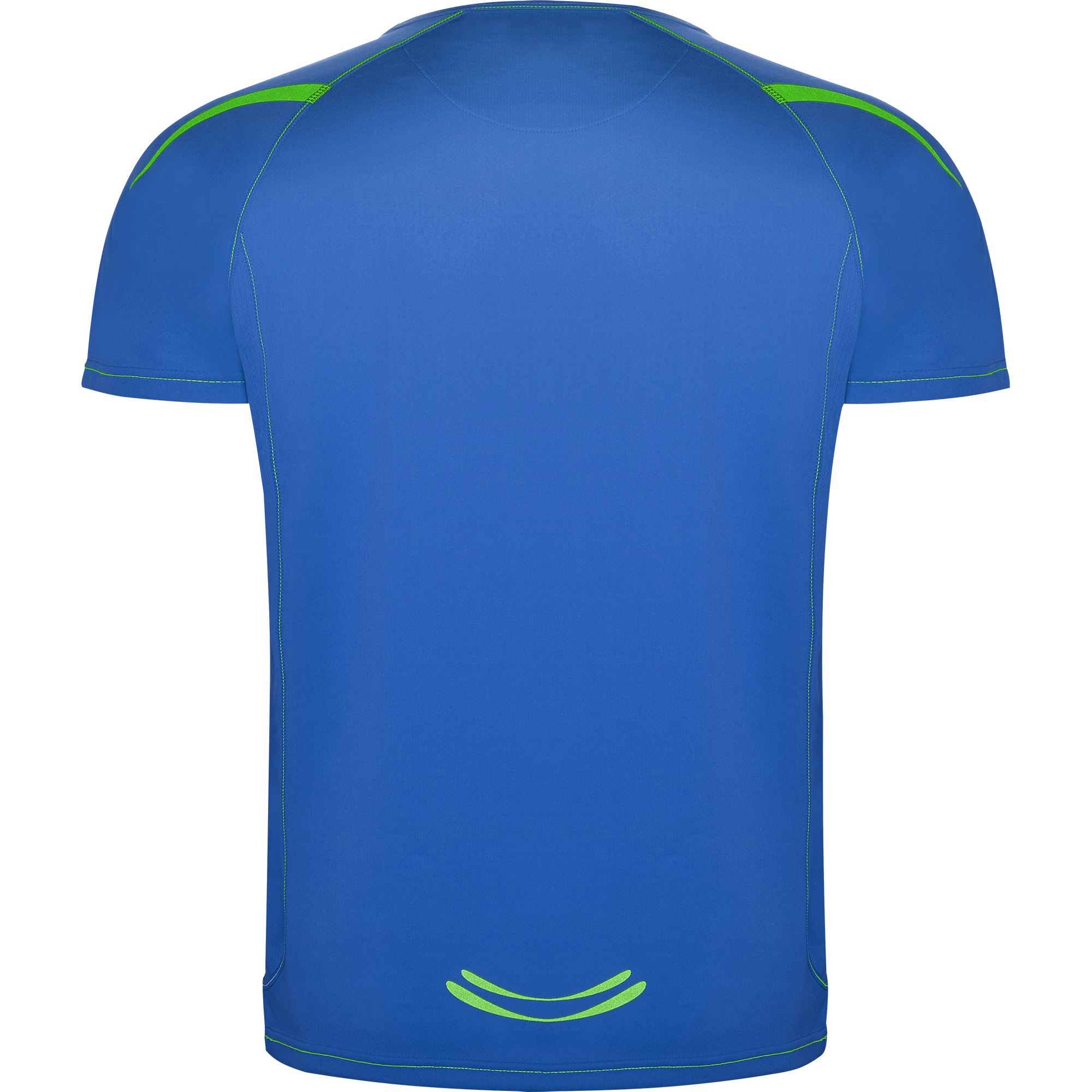 Camiseta técnica manga ranglan unisex transpirable. Costuras a contraste. Cuello ribeteado en el mismo tejido. Paneles laterales. Detalles reflectantes en hombros en todos los colores menos en negro y royal, que es amarillo fluor.