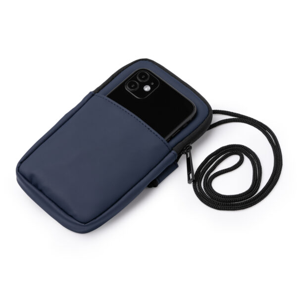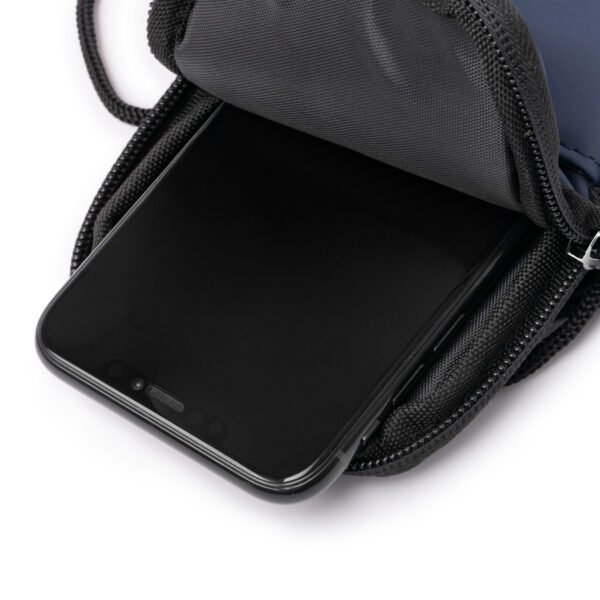 Portamóvil realizado en PU Leather. Cuenta con un compartimento principal con cierre de cremallera, un bolsillo exterior y cinta de transporte ajustable para mayor versatilidad de transporte. Composición: PU Leather