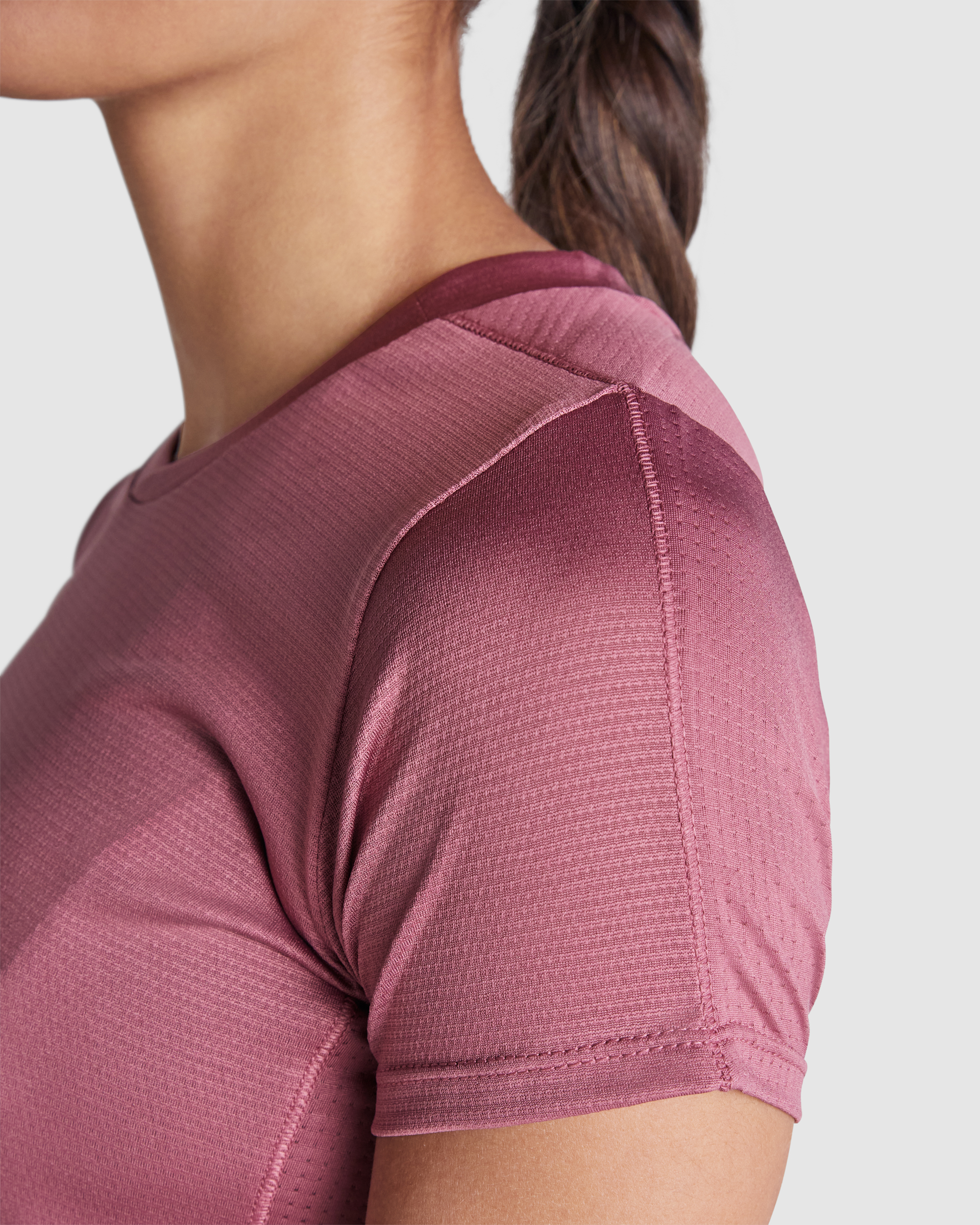 Camiseta técnica manga corta entallada transpirable. Roly Control Dry. Combinación de tejidos ligeros y elásticos en hombros, espalda y paneles laterales. Cuello cruzado redondo y cubrecosturas del mismo tejido al tono. Costuras adelantadas. Certificado GRS.