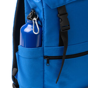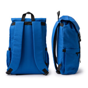 Mochila con solapa realizada en 600D RPET. Solapa con cierres ajustables. Compartimento principal con bolsillo interior para portátil de 15″. Bolsillo exterior en la solapa y bolsillo frontal con cierre de cremallera y 2 bolsillos laterales con elástico. Asas y espalda acolchadas.