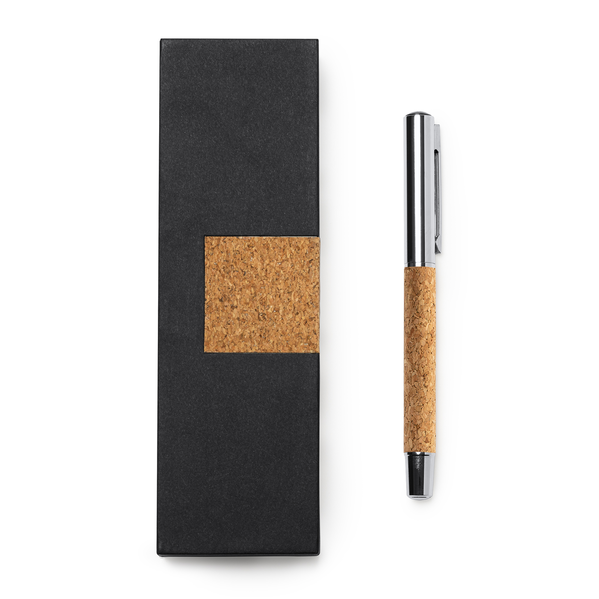 Roller promocional realizado en corcho natural y metal. Presentación en elegante estuche combinado en corcho con interior acolchado. Composición: CorchoObservaciones: Tinta azul