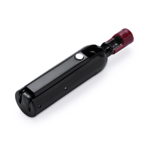 Sacacorchos metálico con original diseño en forma de botella en plástico.Composición: Plástico y metal.Observaciones: Presentación en caja blanca.