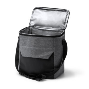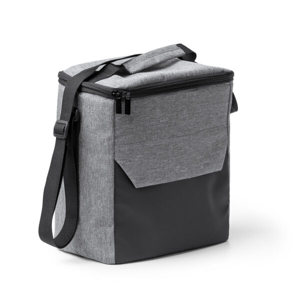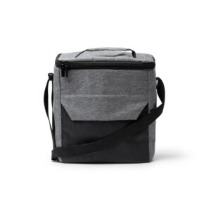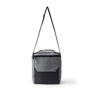 Nevera realizada en PU Leather y 300D RPET con interior isotérmico. Gran compartimento principal y bolsillo exterior con cierre de cremallera. Asa con refuerzo y cinta de transporte ajustable.Composición: PU Leather y RPET