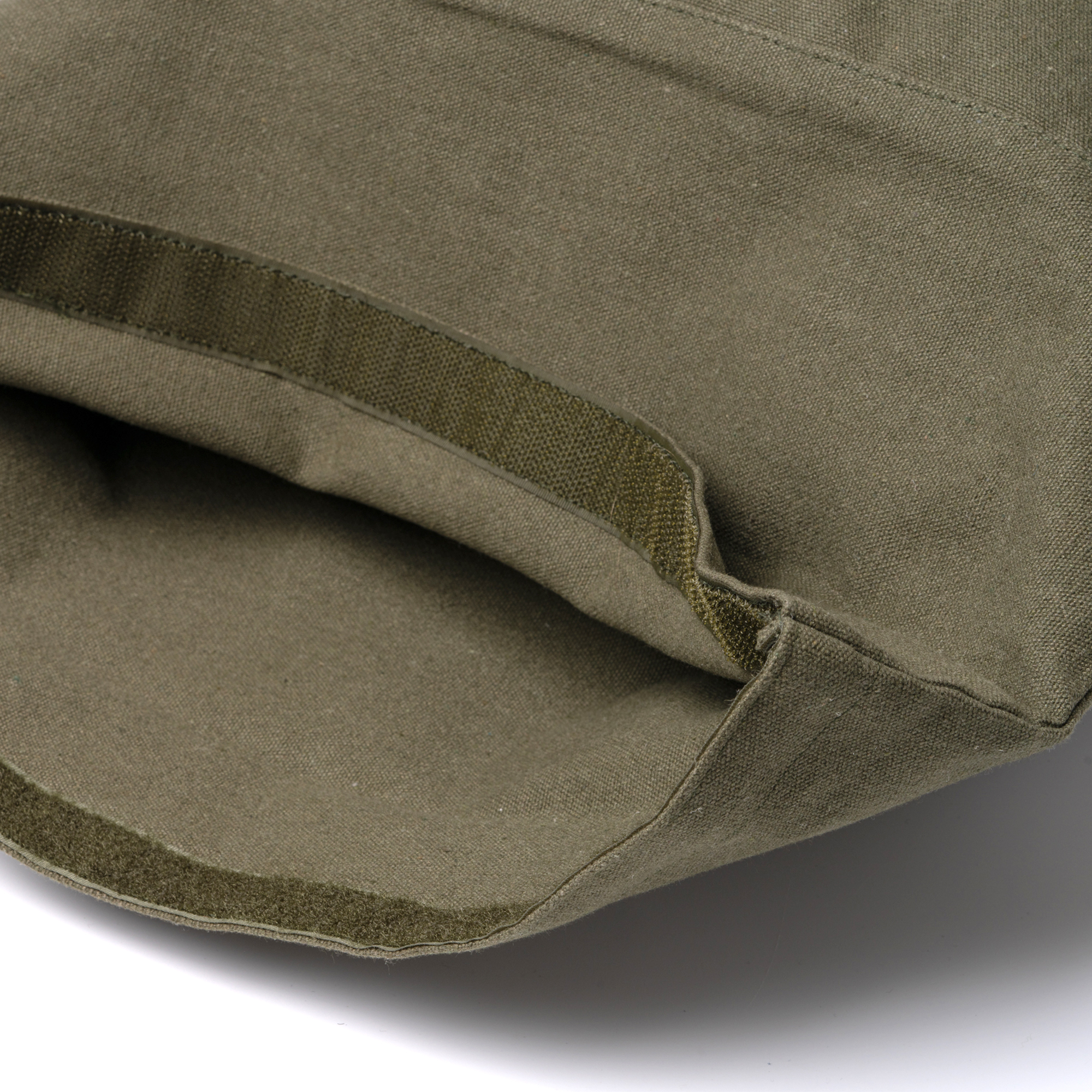 Mochila de algodón reciclado 370 g/m². Cuenta con un gran compartimento principal de apertura extensible con cremallera y ajustador para amplio almacenamiento, además de bolsillo frontal con cierre de cremallera y bolsillo lateral para el almacenamiento de pequeños enseres.