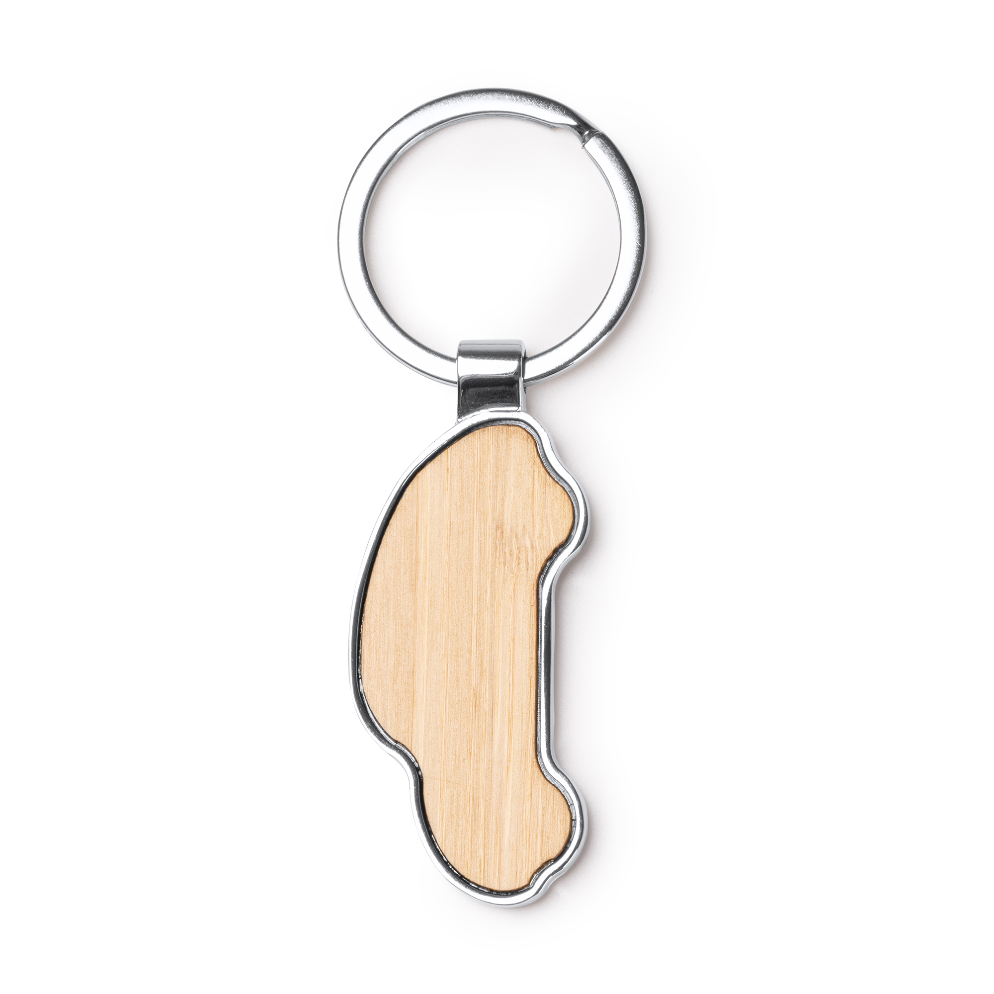 Llavero en forma de coche elaborado en bambú con acabado de metal. Una opción elegante y sostenible para llevar tus llaves con estilo. La forma de coche le agrega un toque divertido y distintivo, ideal para los amantes de los vehículos.
