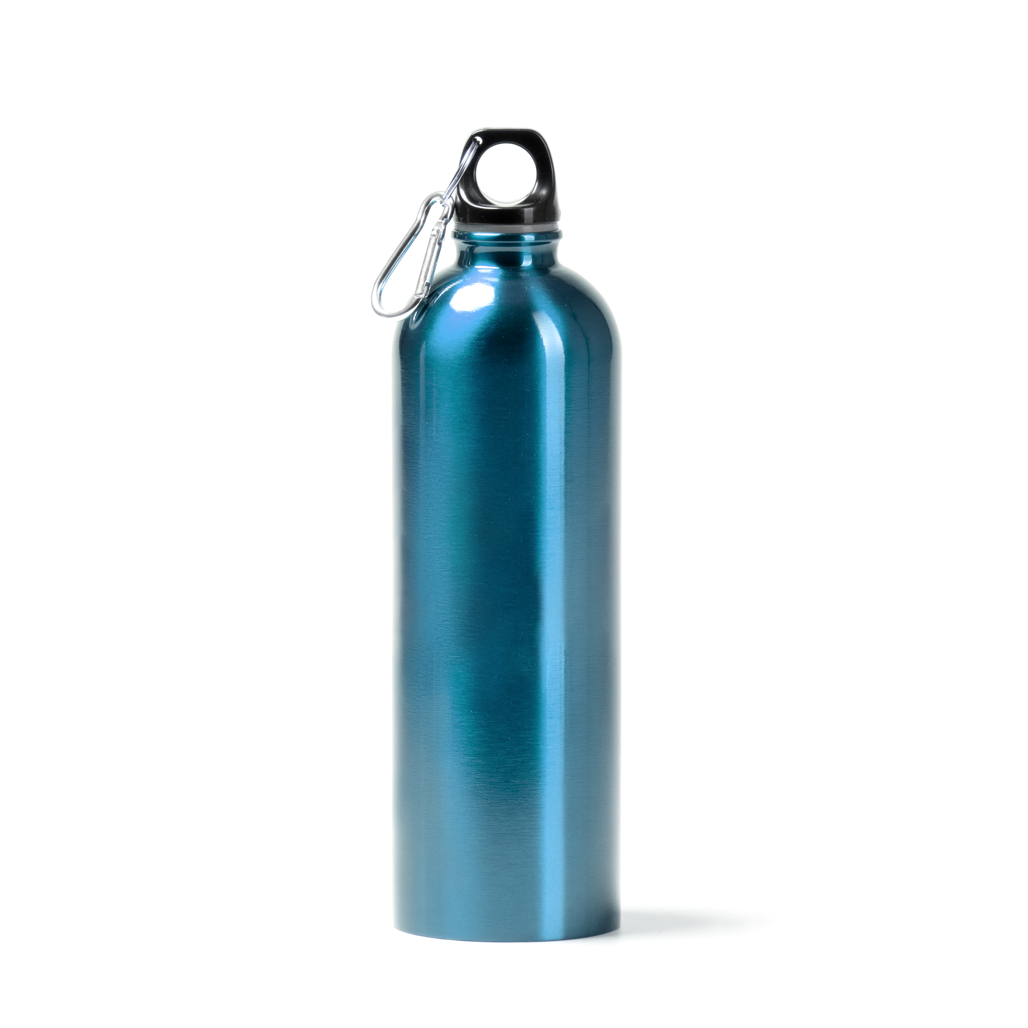 Bidón de acero inoxidable 304 reciclado. Con capacidad para 750 ml y acabado metalizado. Cuenta con tapón a rosca con silicona para evitar el goteo de las bebidas. Incorpora también un mosquetón en el tapón para hacer más fácil su transporte.