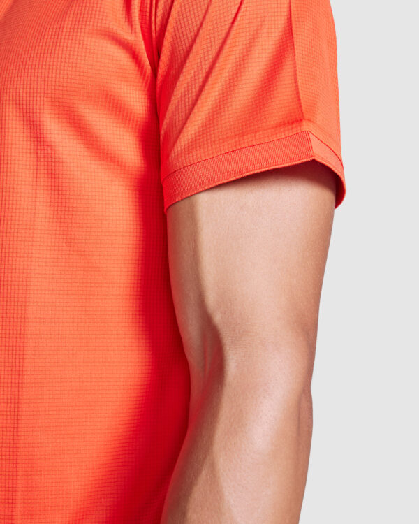 Polo técnico manga corta transpirable. Roly Control Dry. Antibacteriano. Costuras laterales adelantadas con aperturas. Cuello y puños rib 1×1 al tono. Tapeta con botones a presión al tono. Cubrecosturas del mismo tejido al tono. Certificado GRS.