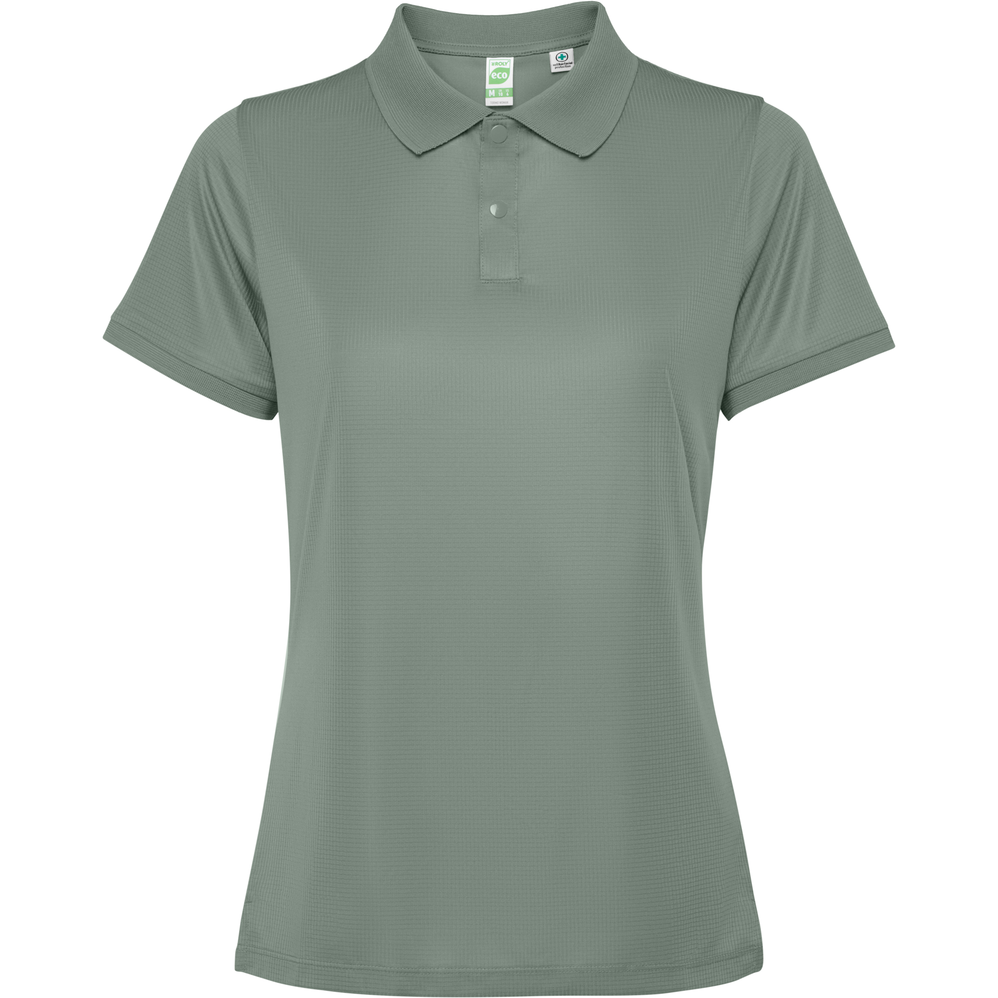 Polo técnico manga corta transpirable entallado. Roly Control Dry. Antibacteriano. Costuras laterales adelantadas con aperturas. Cuello y puños rib 1×1 al tono. Tapeta con botones a presión al tono. Cubrecosturas del mismo tejido al tono. Certificado GRS.