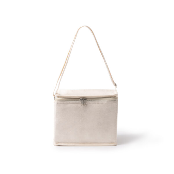 Nevera de algodón con bolsillo frontal. Bolsillo principal con interior isotérmico para mantener tus alimentos y bebidas en la temperatura óptima. Incluye cinta de transporte ajustable, que ofrece mayor comodidad, con detalles metalizados. Con cierre con doble cremallera.