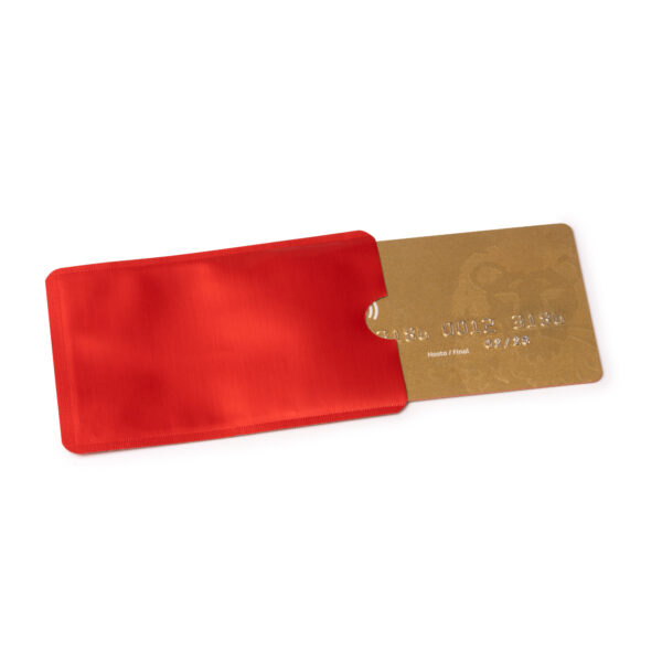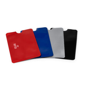 Tarjetero con sistema de seguridad RFID con acabado en aluminio. Una opción segura y práctica para el cuidado de tus tarjetas.