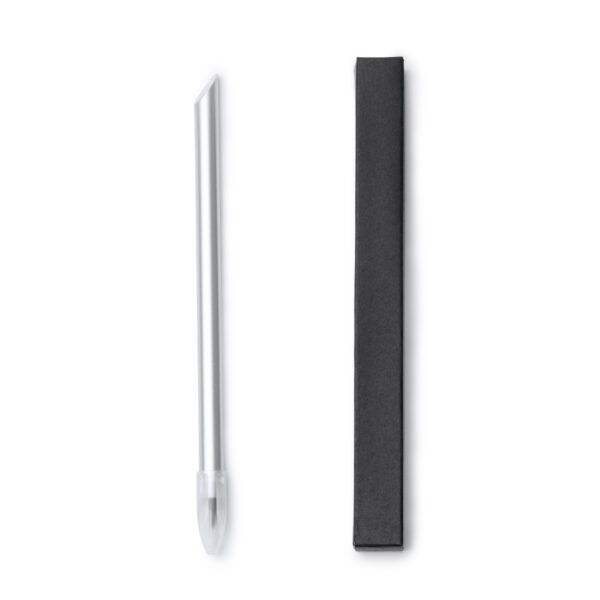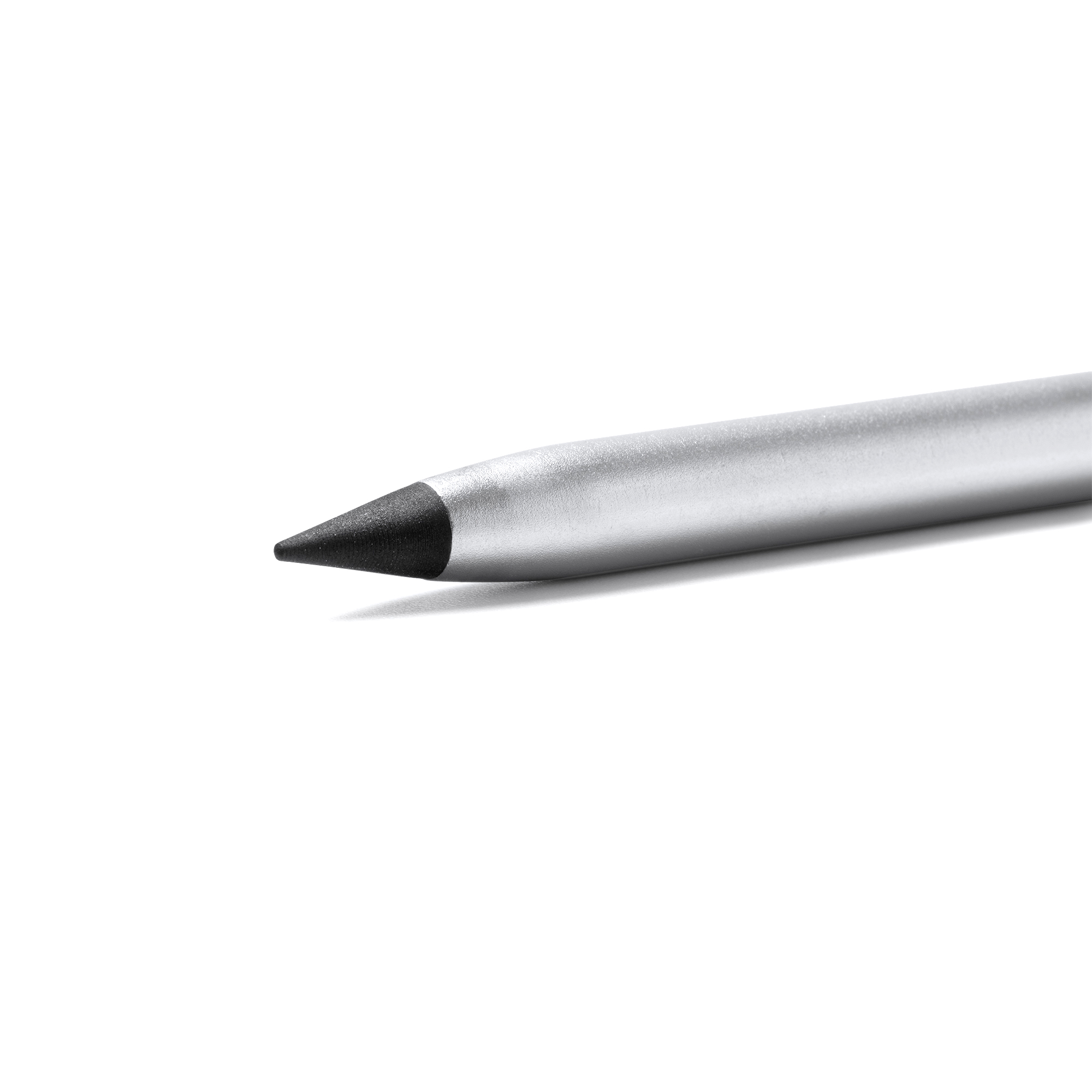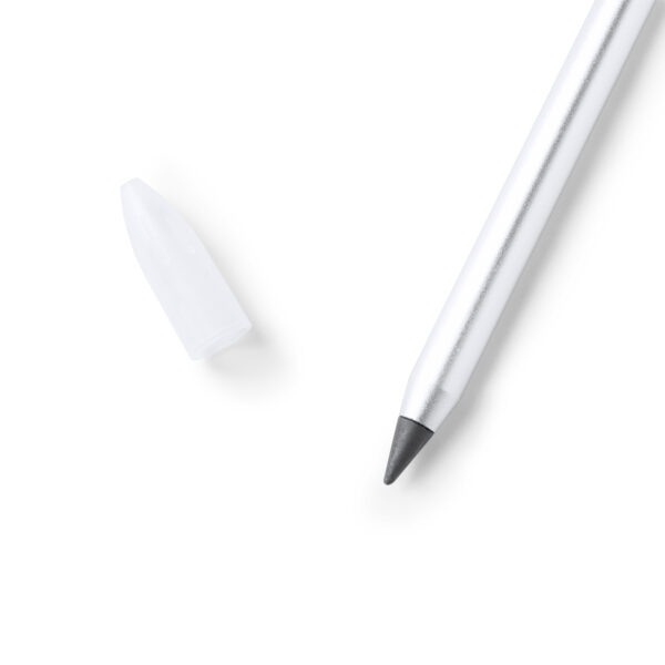 Lápiz con cuerpo de aluminio con elegante diseño. Punta de grafito de escritura infinita reemplazable. Con capucha transparente. Composición: AluminioObservaciones: Presentación en caja negra.