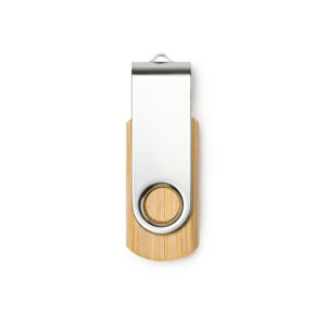 Memoria USB con cuerpo en bambú y clip giratorio metálico. Capacidad de 16 GB.