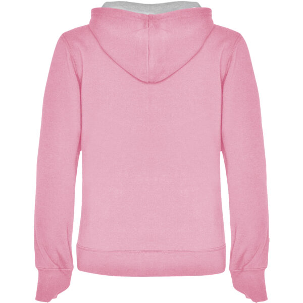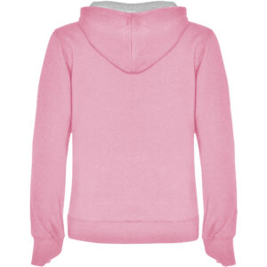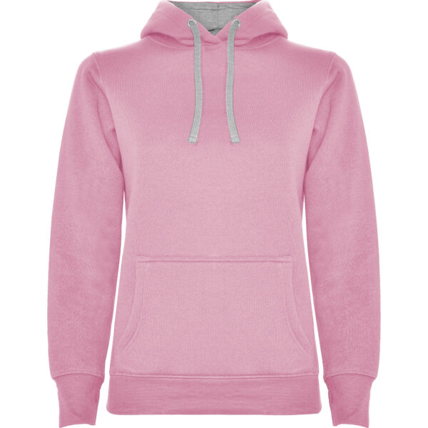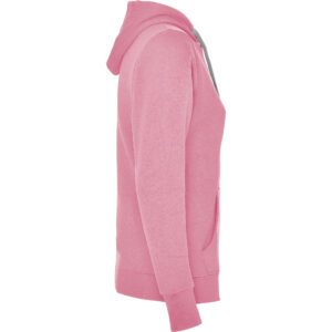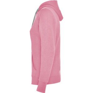 Sudadera con capucha forrada. Puños y cinturilla en canalé 1×1 con elastano. Apertura en puños para el pulgar. Cubrecosturas del mismo tejido. Cordón plano en capucha. Opciones de colores con capucha a contraste y ojales metálicos al tono.