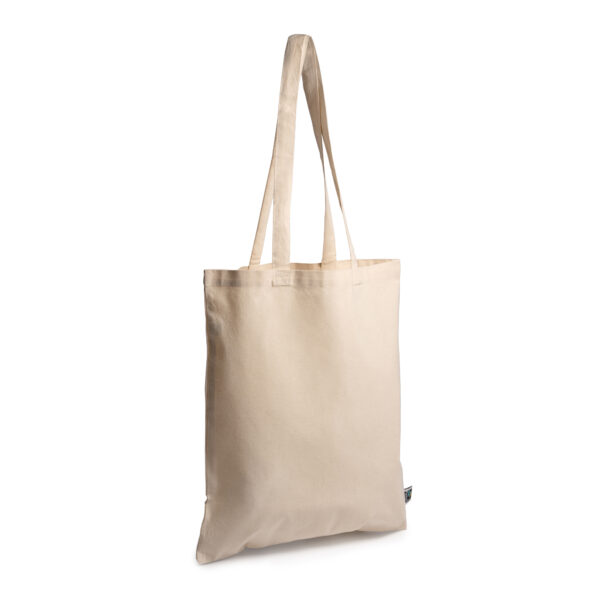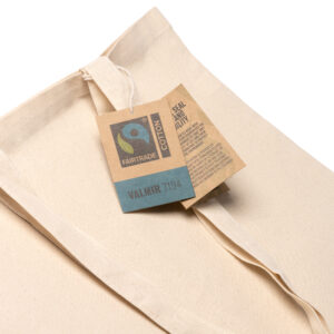 Bolsa 100% algodón Fairtrade de 180 g/m² con asas largas reforzadas de 70 cm. Personaliza tu bolsas con un diseño creativo.Composición: 100% algodón Fairtrade