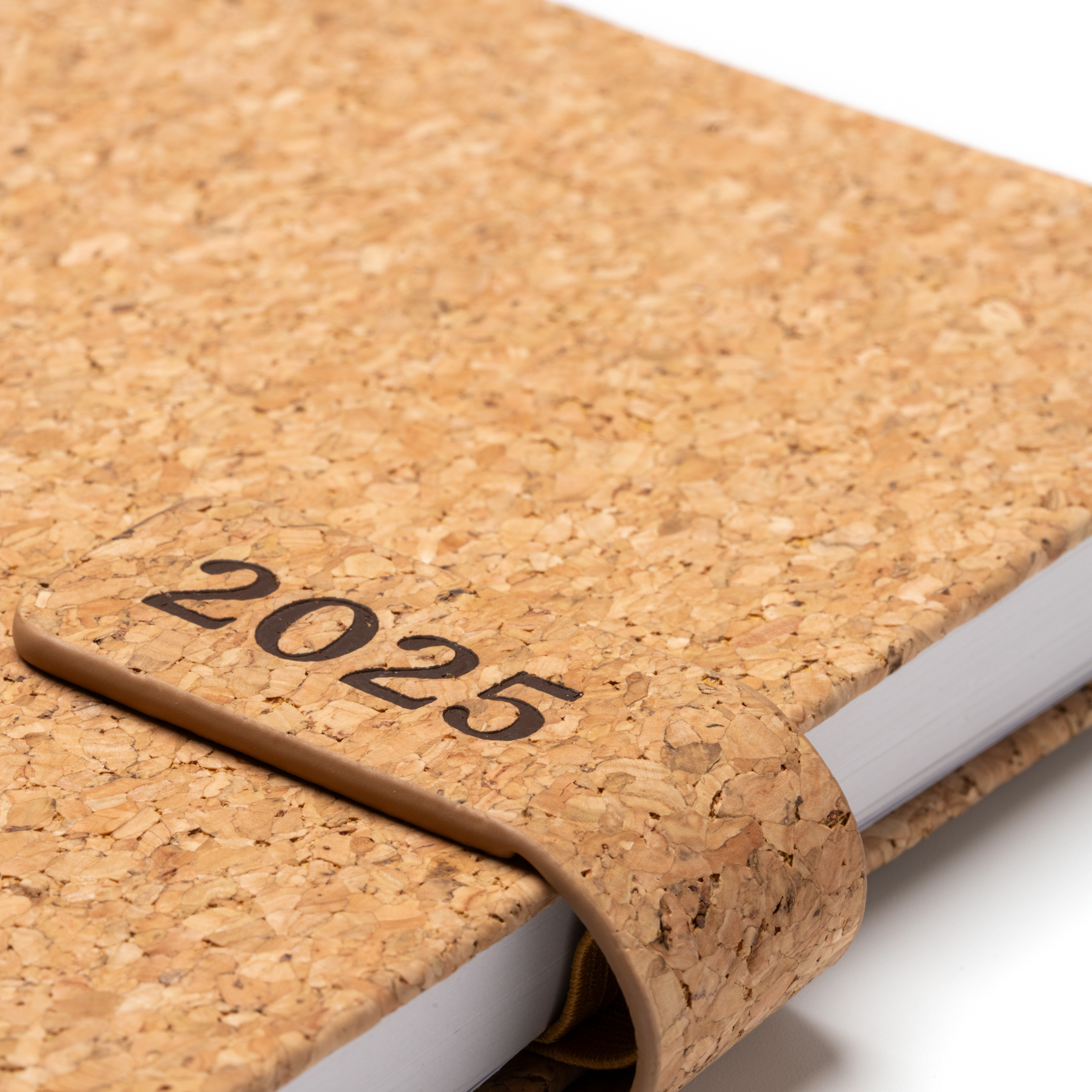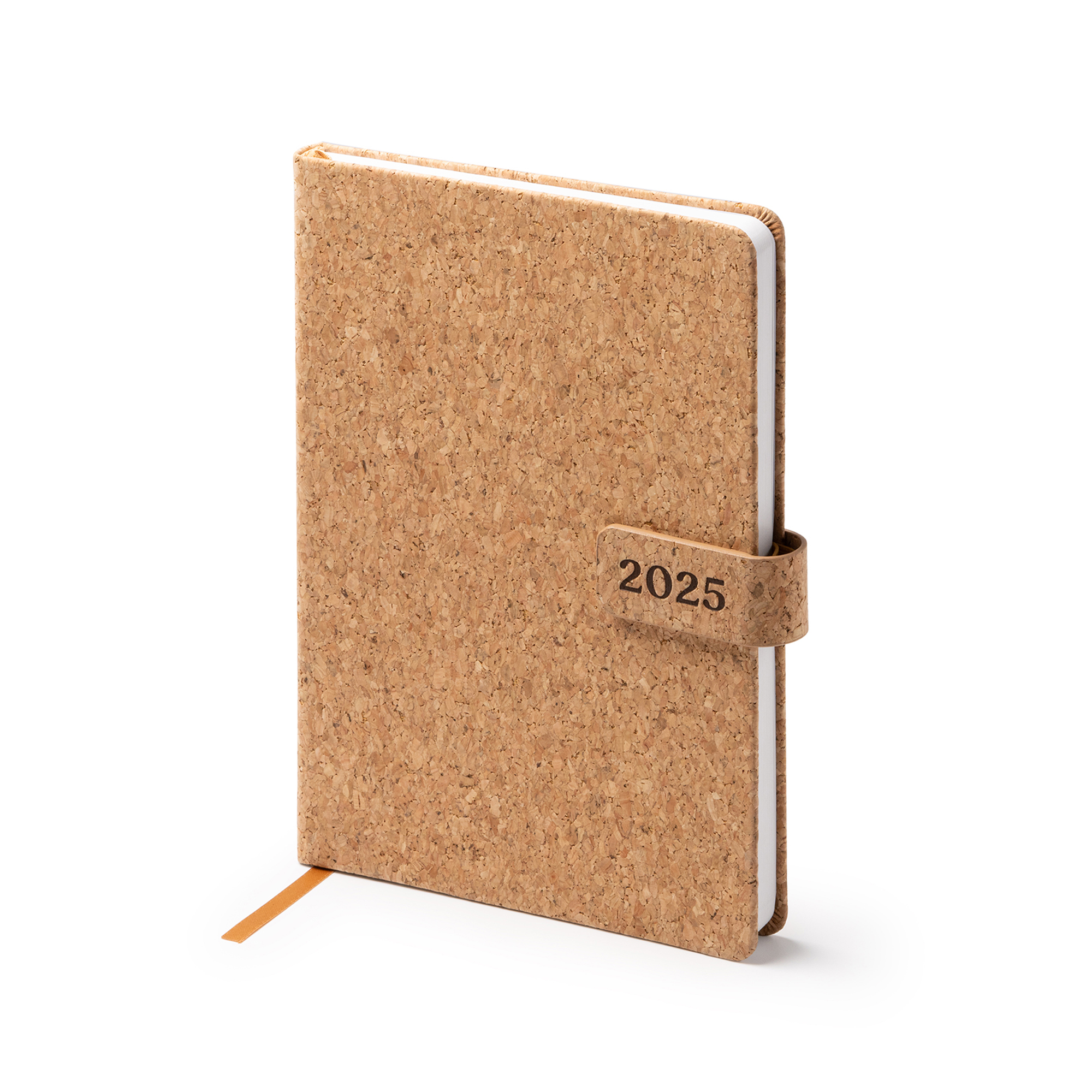 Agenda tamaño A5 realizada con corcho y cubierta magnética. Contiene 320 páginas más 4 páginas con mapas. Incluye marcador de páginas a juego con la portada. Papel interior blanco con impresión a color 2+2. Ideal para una organización elegante y práctica.