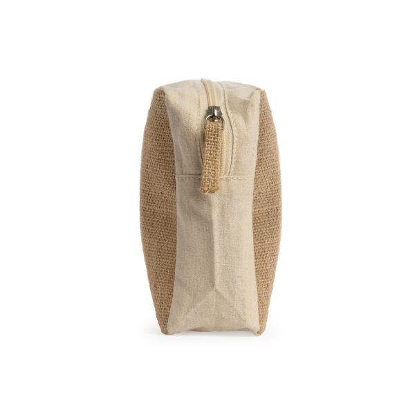 Neceser realizado en algodón y yute laminado. Cierre de cremallera con tirador de yute a juego. Una opción práctica y natural para el almacenaje de tus enseres personales. Composición: Algodón y yute.