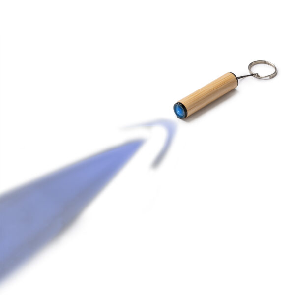 Llavero linterna con cuerpo elaborado en bambú, práctico, elegante y sostenible. Su diseño compacto y ligero que lo hace ideal para llevar en el bolsillo o colgarlo junto a las llaves. Incorpora una linterna LED que proporciona una iluminación brillante en situaciones de poca luz. Además, se incluyen tres pilas de botón LR41, lo que garantiza un uso inmediato.