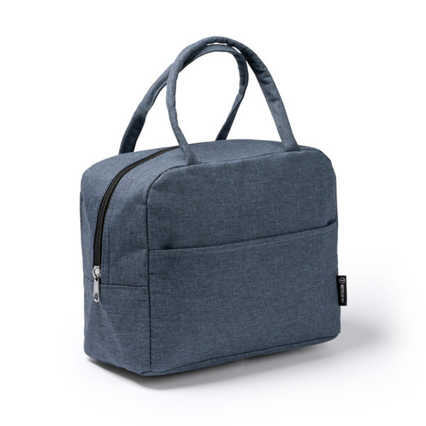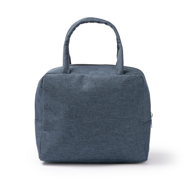 Nevera realizada en 600D RPET con un compartimento principal con interior isotérmico para el almacenaje de bebidas y alimentos a la temperatura óptima. Cuenta, además, con un bolsillo frontal para el almacenaje de utensilios y pequeños snaks, además de asas redondas acolchadas para mayor versatilidad en su transporte.