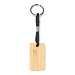 Llavero de madera en dos formatos con resistente cordón en políester.