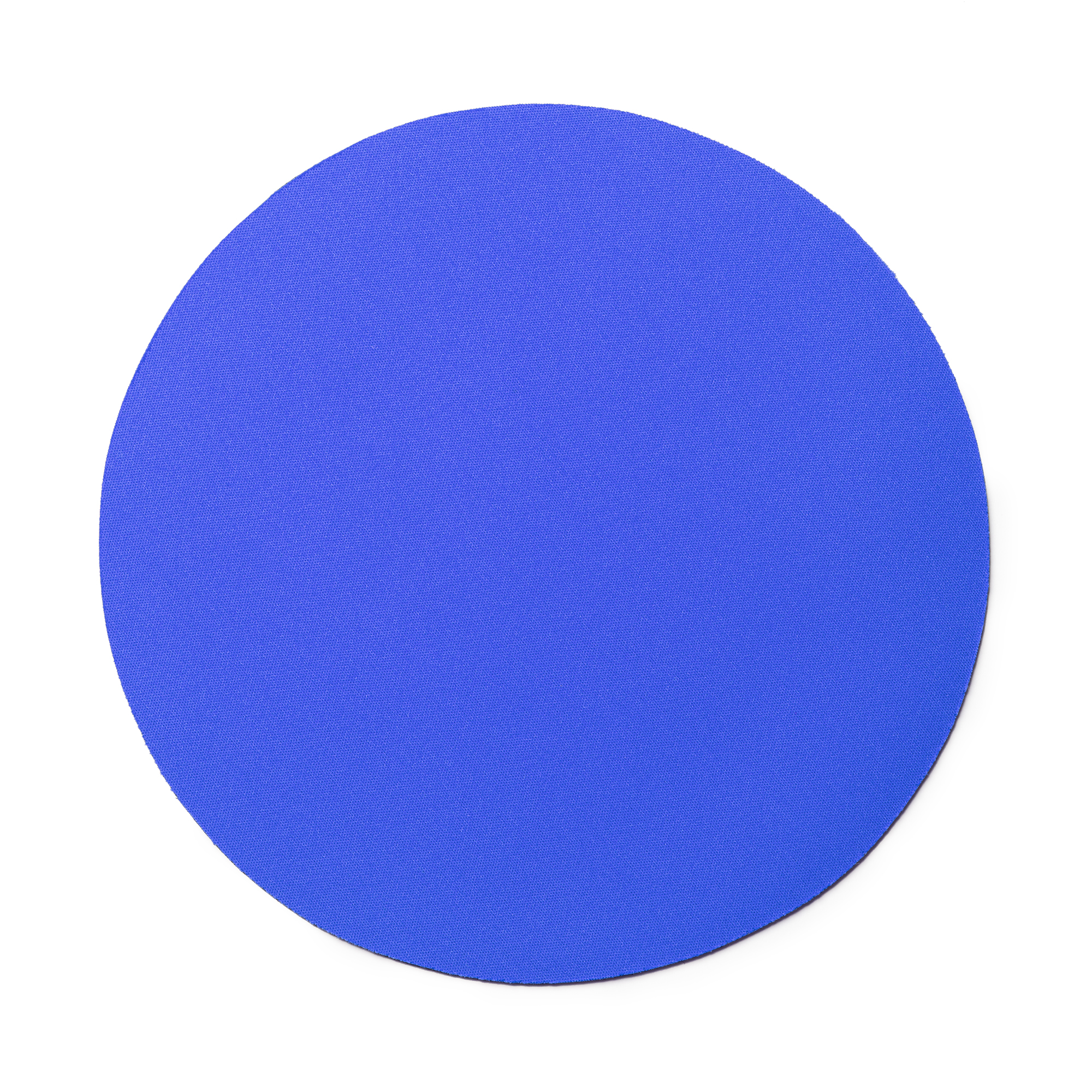 Alfombrilla para ratón de formato redondo, con superficie de suave poliéster y base antideslizante.