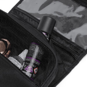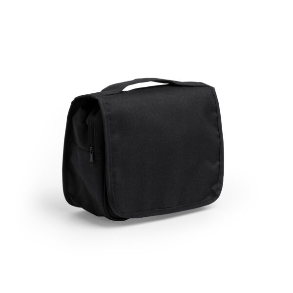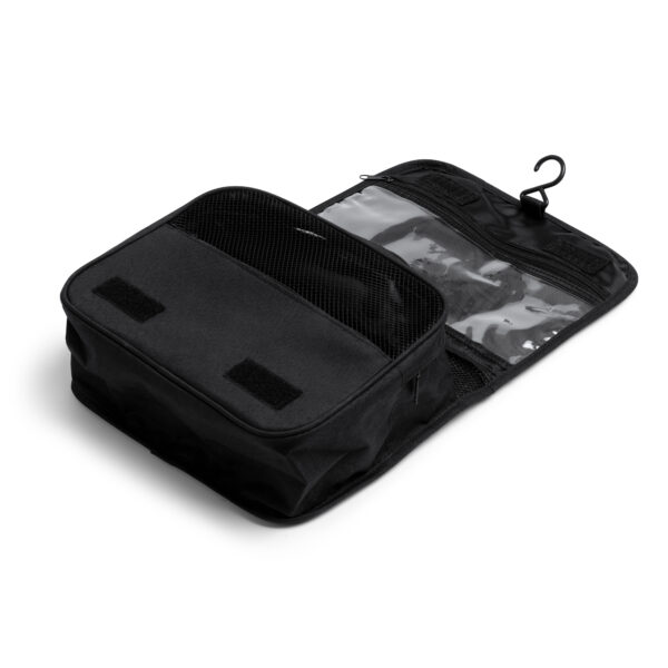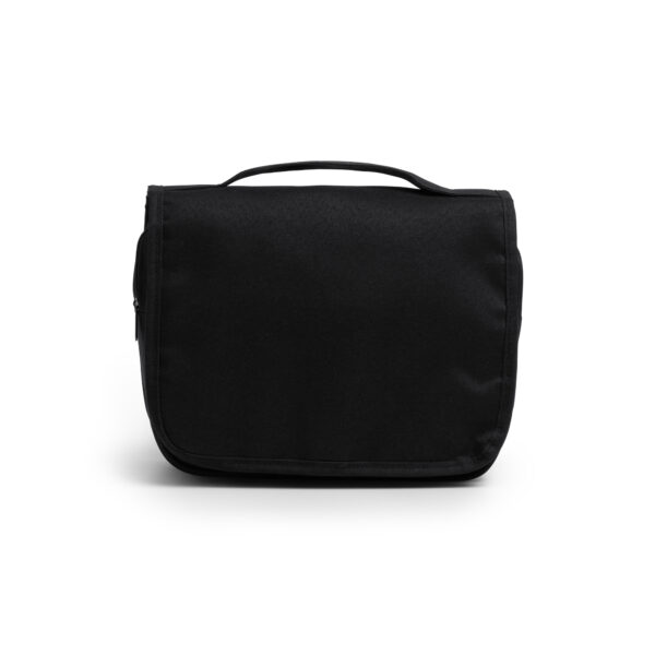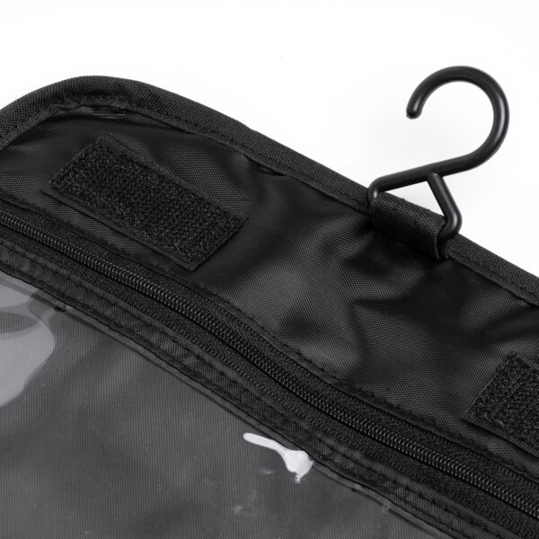 El neceser multiusos realizado en poliéster reciclado RPET 300D con diseño vigoré es una opción respetuosa con el medio ambiente a la vez que práctica. Cuenta con un compartimento principal que cuenta con diferentes divisiones de menor tamaño optimizadas para el almacenaje de enseres de cuidado personal. Además, cuenta con un compartimento adicional en la parte frontal interna con cierre de cremallera y otro en la parte superior. Incluye también un gancho para sujeción.