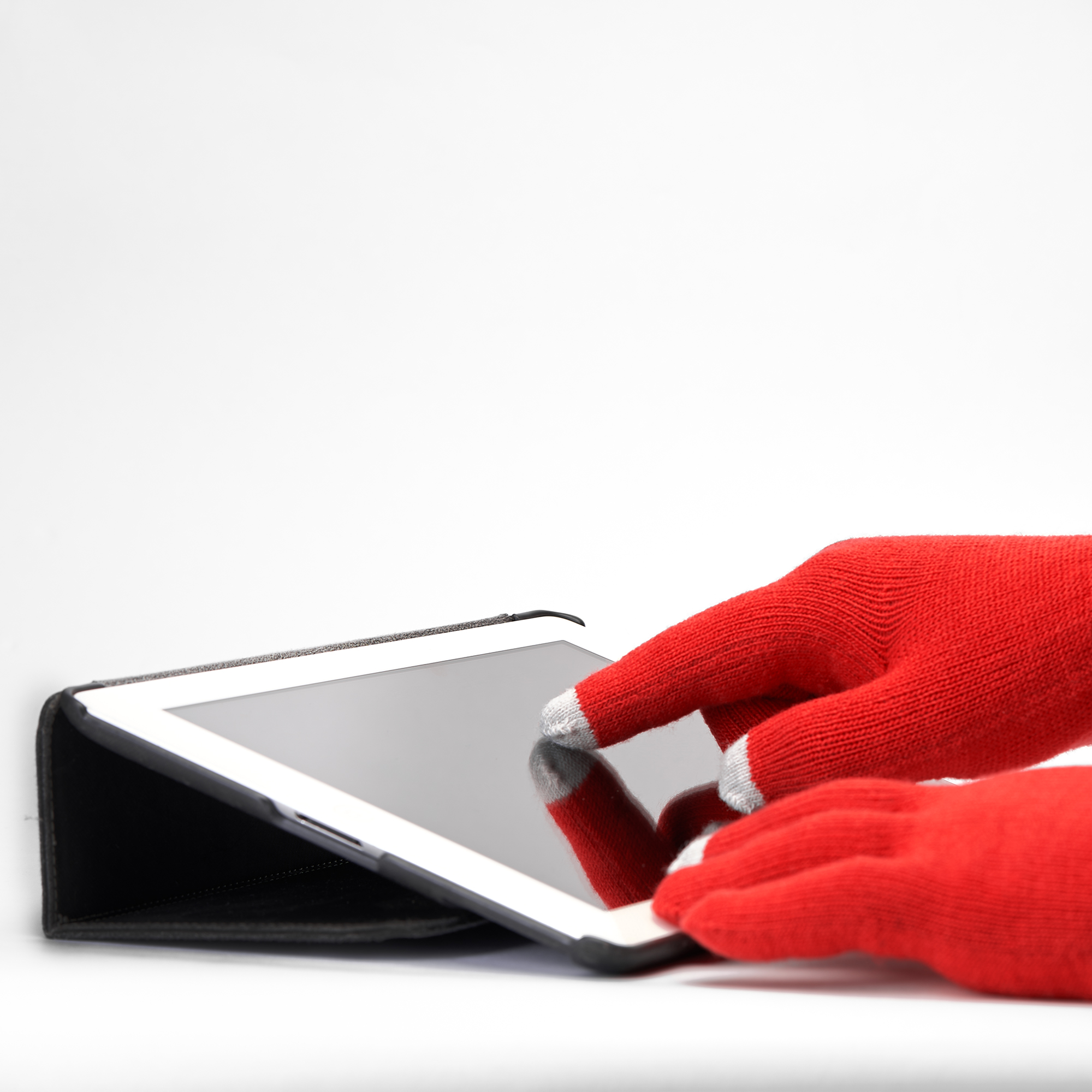 Guantes con dedos pulgar, índice y corazón táctiles. Zona táctil en diferente color al resto del guante.