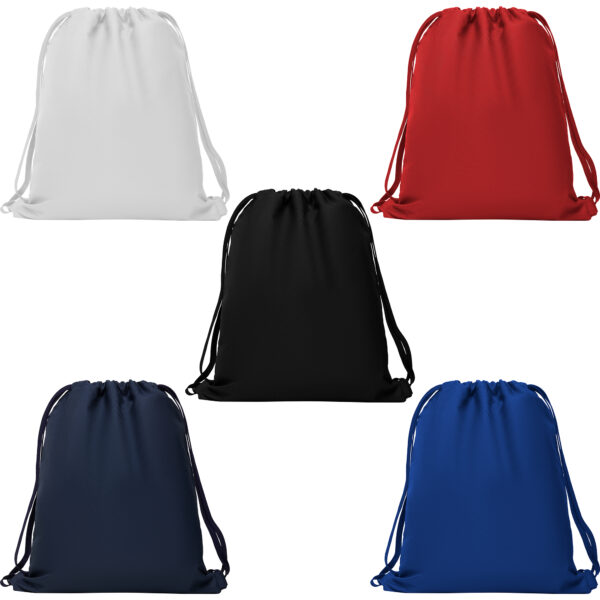 Mochila deportiva de diseño plano y fácil personalización. Cordones planos a tono. Bolsillo interior con cremallera. 100% poliéster 600D. 150 g/m².